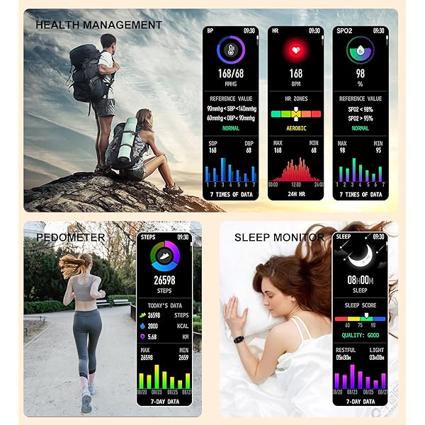 HEALTH MONITORING: This smart watch can help you achieve a healthier and more active life with 24/7 heart rate blood pressure, and blood oxygen. (Not for medical use). This smartwatch, adopts a sensitive motion sensor, real-time tracking of your sleep quality analysis (deep sleep, light sleep, and awake), pays attention to your health at all times, records physical changes, and helps you better understand your health. The women smart watches also have functions such as the Female Physiological Cycle, Drink Reminder, and Sedentary Reminder, which is a very thoughtful life assistant.