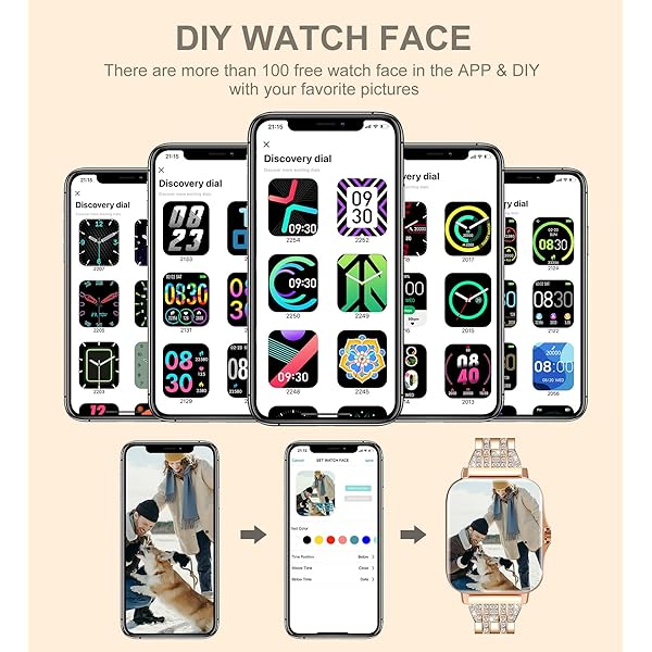 1.7" SCREEN & CUSTOM WATCH DIALS: Ultra-thin metal frame with 1.7’’ HD full touch screen brings comfortable touch and excellent visual experience. The flexible touch response, and detailed image quality, bring you a unique visual and better interactive experience. There are 100+ free dials within the app for you to choose from, you can also customize your watch faces with your favorite picture such as your family, pet, etc. Comes with 2 bands, the stainless steel diamond band is more fashionable, the pink silicone band is more casual and sporty. It's the best gift for your friends.