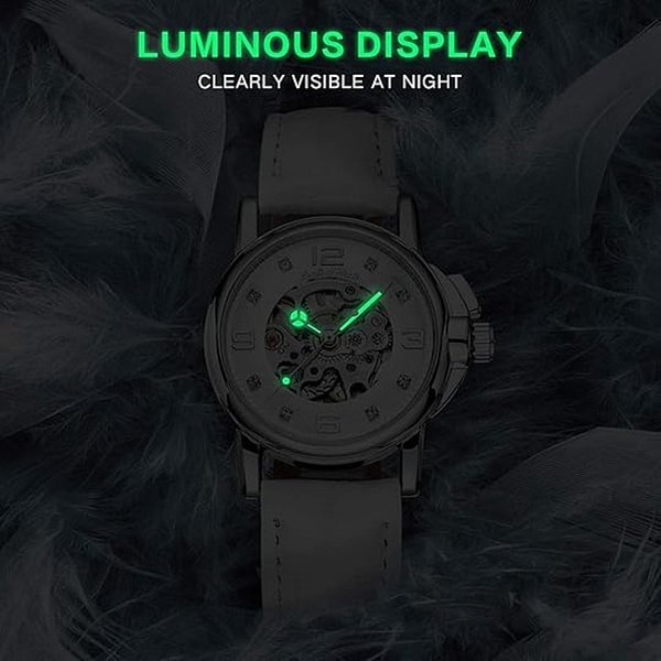 MECHANICAL MOVEMENT: Automatic mechanical watch does not require battery (Daily using, temperature and shocking affect the accuracy of mechanical watches. Manually adjusted is also and effectually to reduce the deviation.).