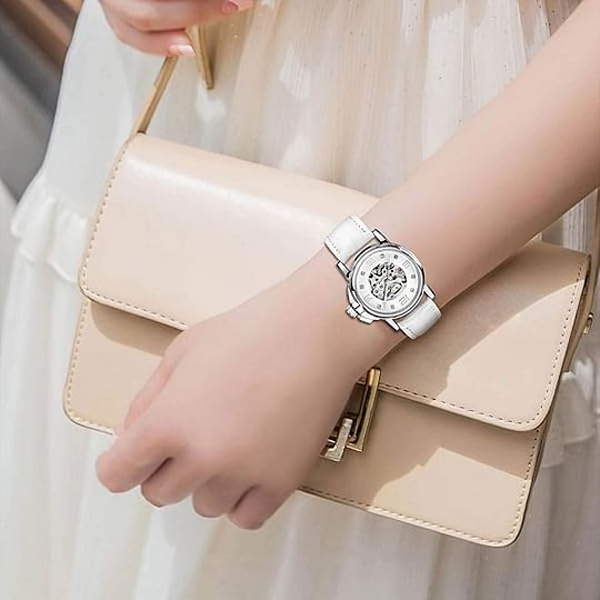 • Women's Watch Luxury Mechanical Stainless Steel Skeleton Steampunk Automatic Self Winding Wristwatch White (2 pcs)