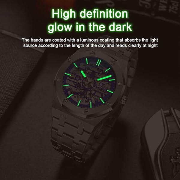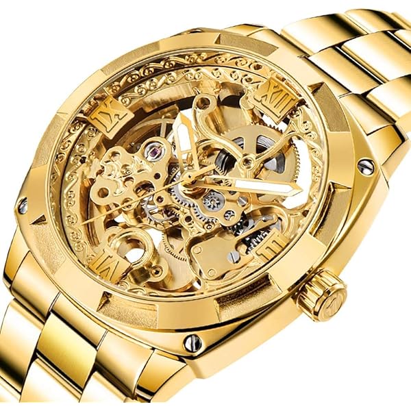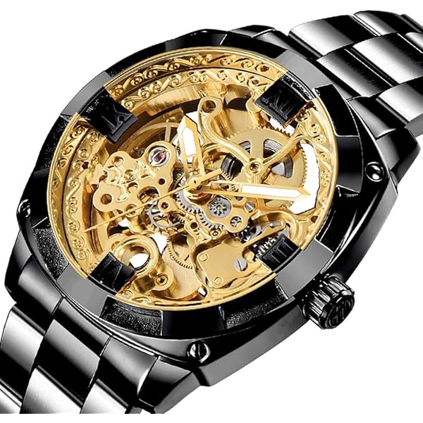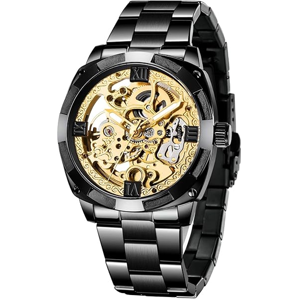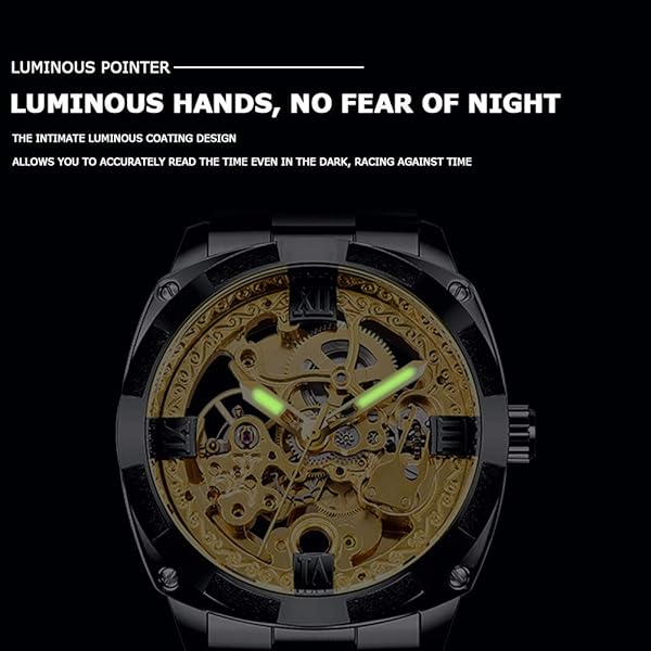 • Mechanical Men's Watch Stainless Steel Automatic Skeleton Watch Waterproof Watches for Men Father’s Day Gift Gold