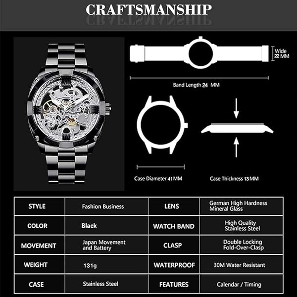 Movement:Imported automatic mechanical movement, Normal daily movements keep it wound, display the time precisely and no battery required. Clasp type Folding Clasp with Safety.