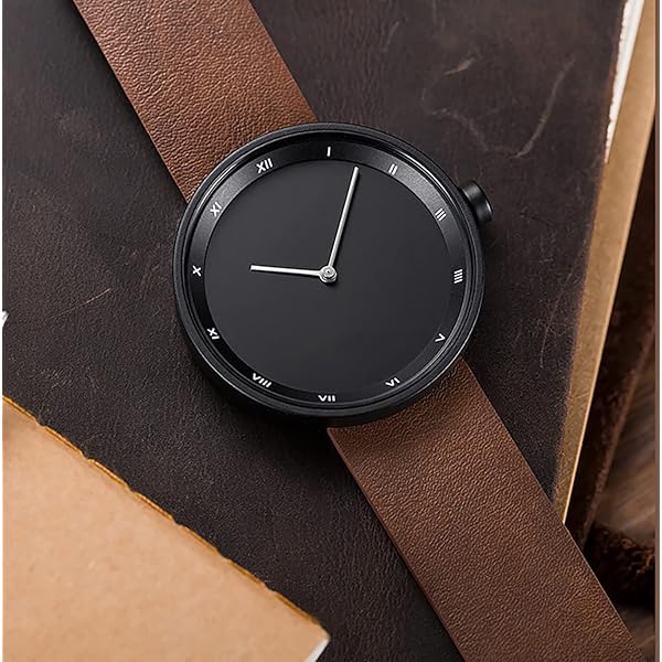 • Men's and Women's Universal Watch Fashion Minimalist Style Large dial Quartz Belt Roman Numerals Waterproof Watch Brown black