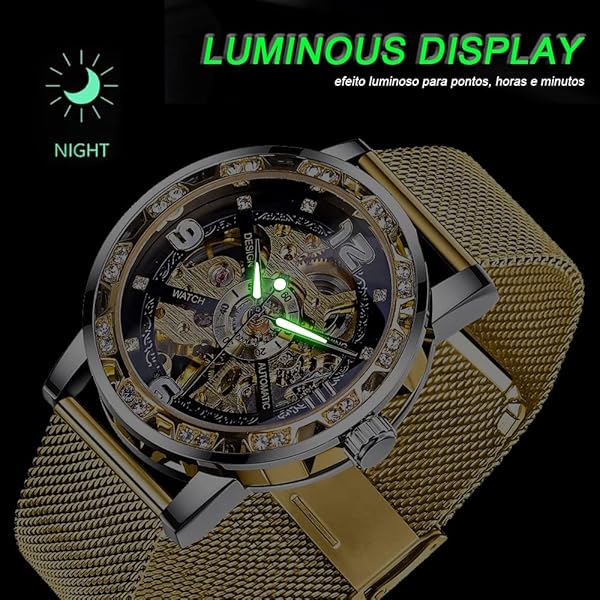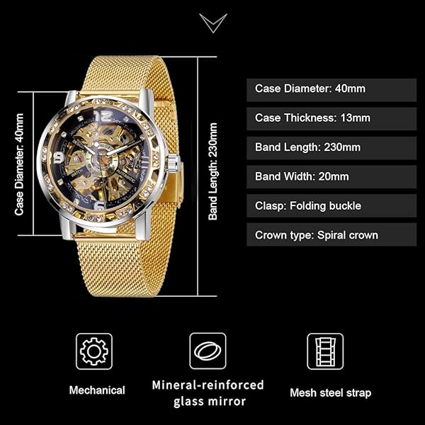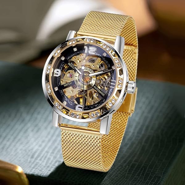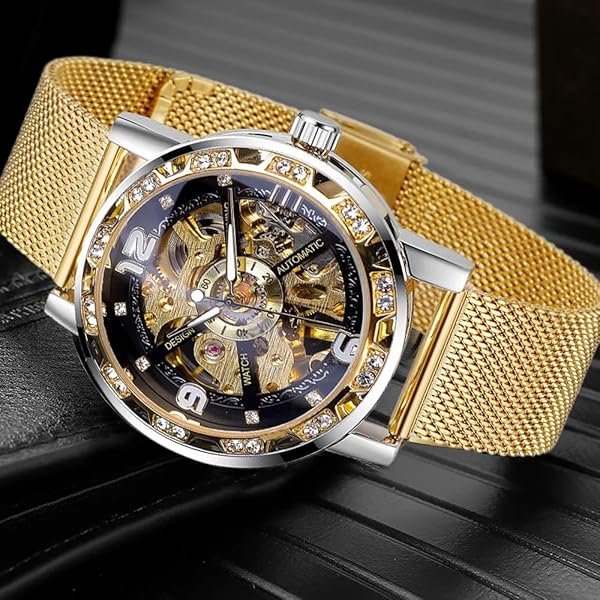【LUXURY STEAMPUNK STYLE】Luxurious diamond design ,Classic skeleton dial, Roman numeral dial, give you exceptional artistic beauty.This skeleton watch with a transparent lower cover, you can see the movement of the watch movement.