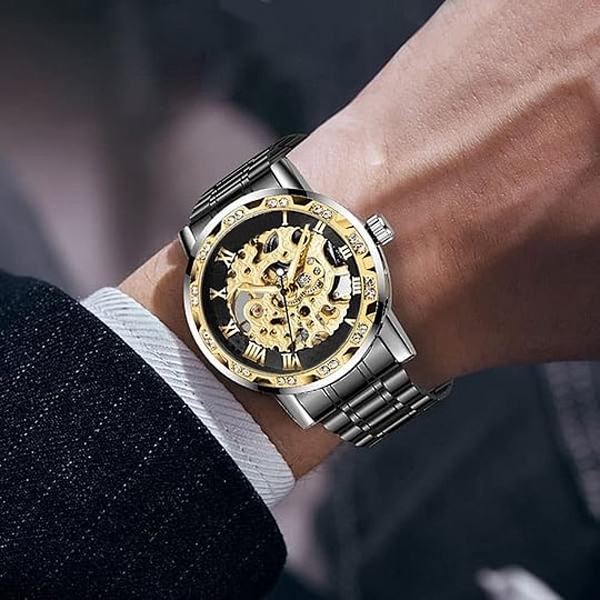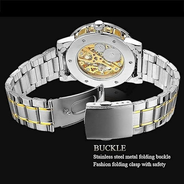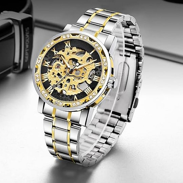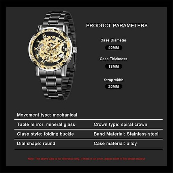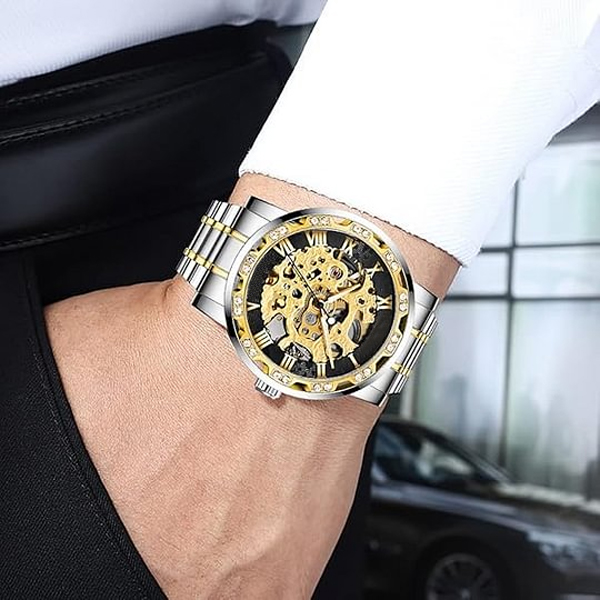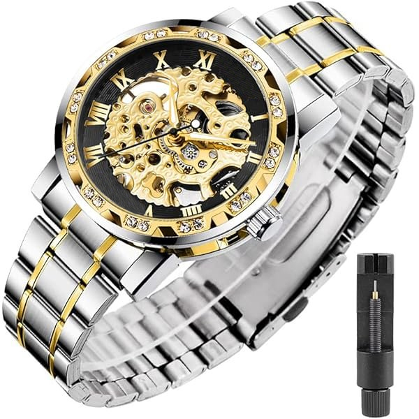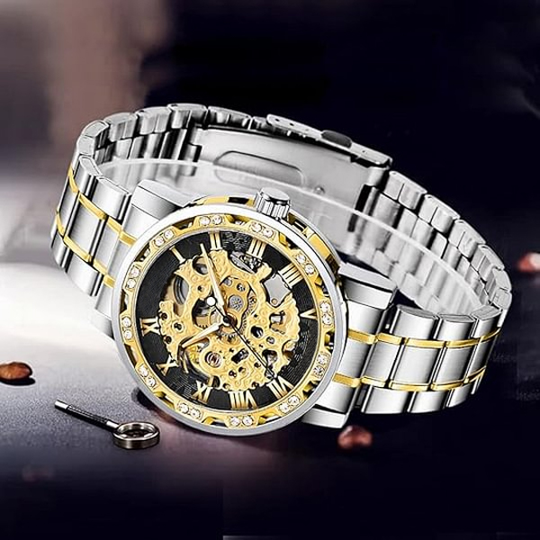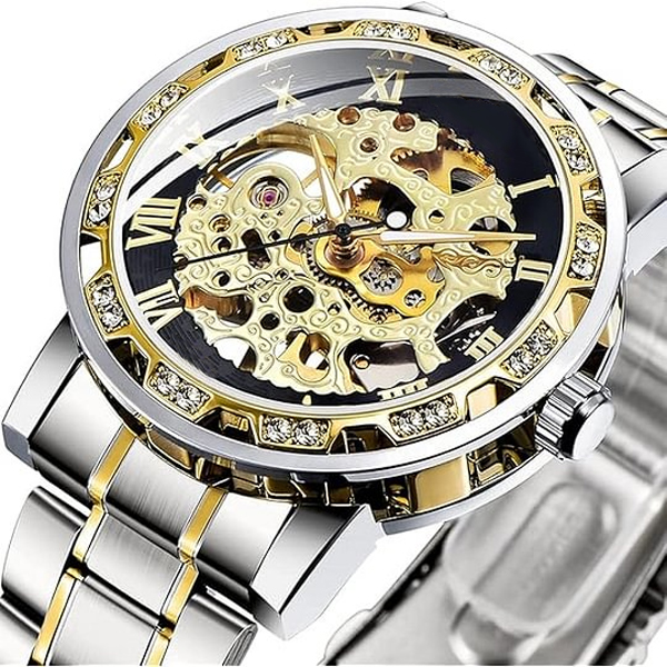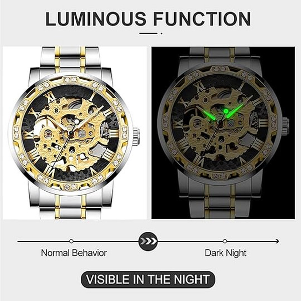 【LUXURY STEAMPUNK STYLE】Luxurious diamond design ,Classic skeleton dial, Roman numeral dial, give you exceptional artistic beauty.This skeleton watch with a transparent lower cover, you can see the movement of the watch movement.