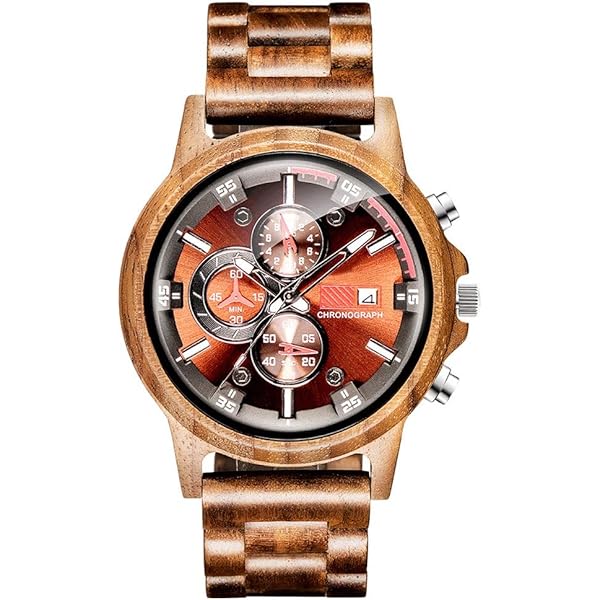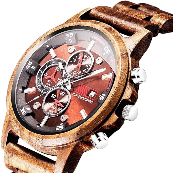 The natural wood material makes it very comfortable to wear on the wrist. Unique Chronograph and Calendar design wooden watch.